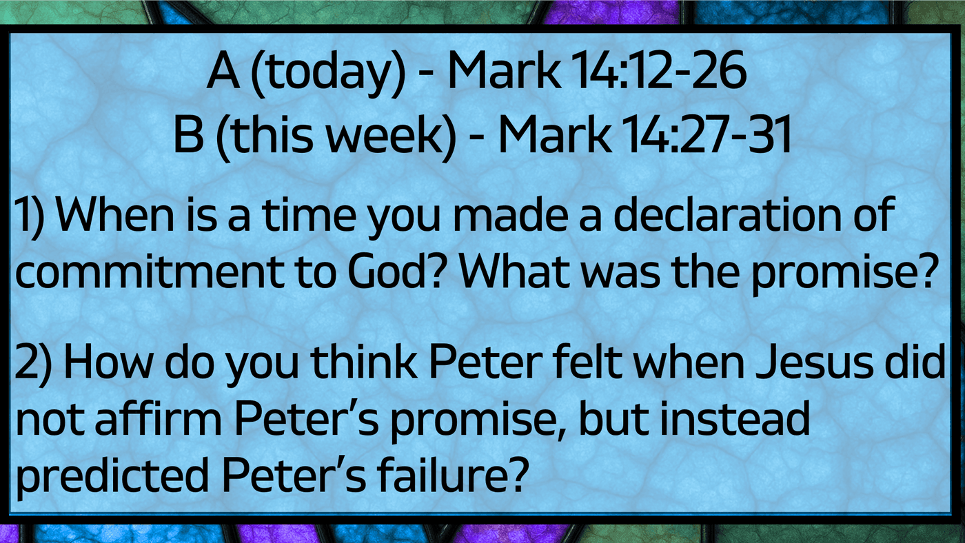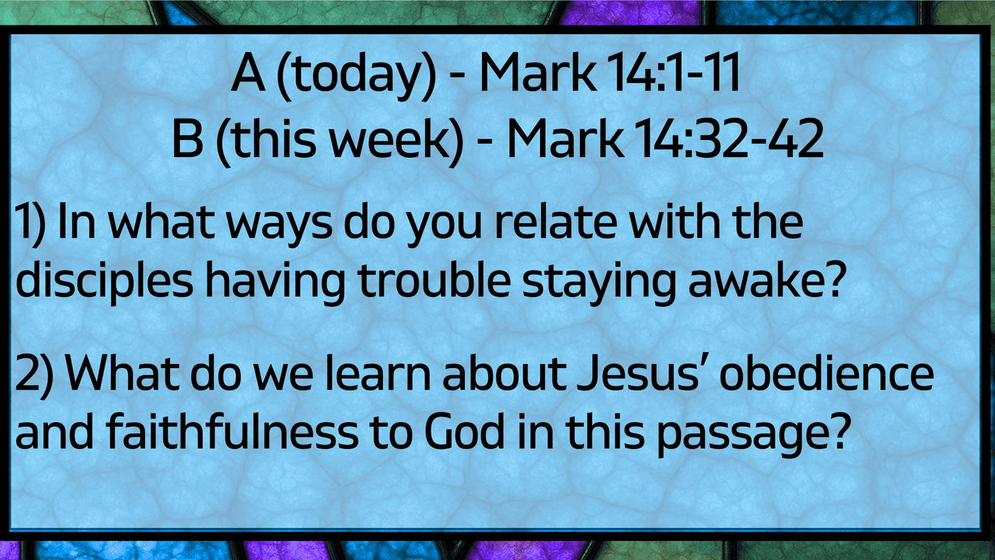 Last year we launched our read through of the Gospel of Mark. Each Sunday, I will preach from what I am calling the "A" text, and then will assign a "B" text for the week with the goal of each of us reading the B text with at least one other person that week and discussing it. This offers us the opportunity to study Mark together both as large and small groups. All of this is to center us as a church family on "Jesus."
