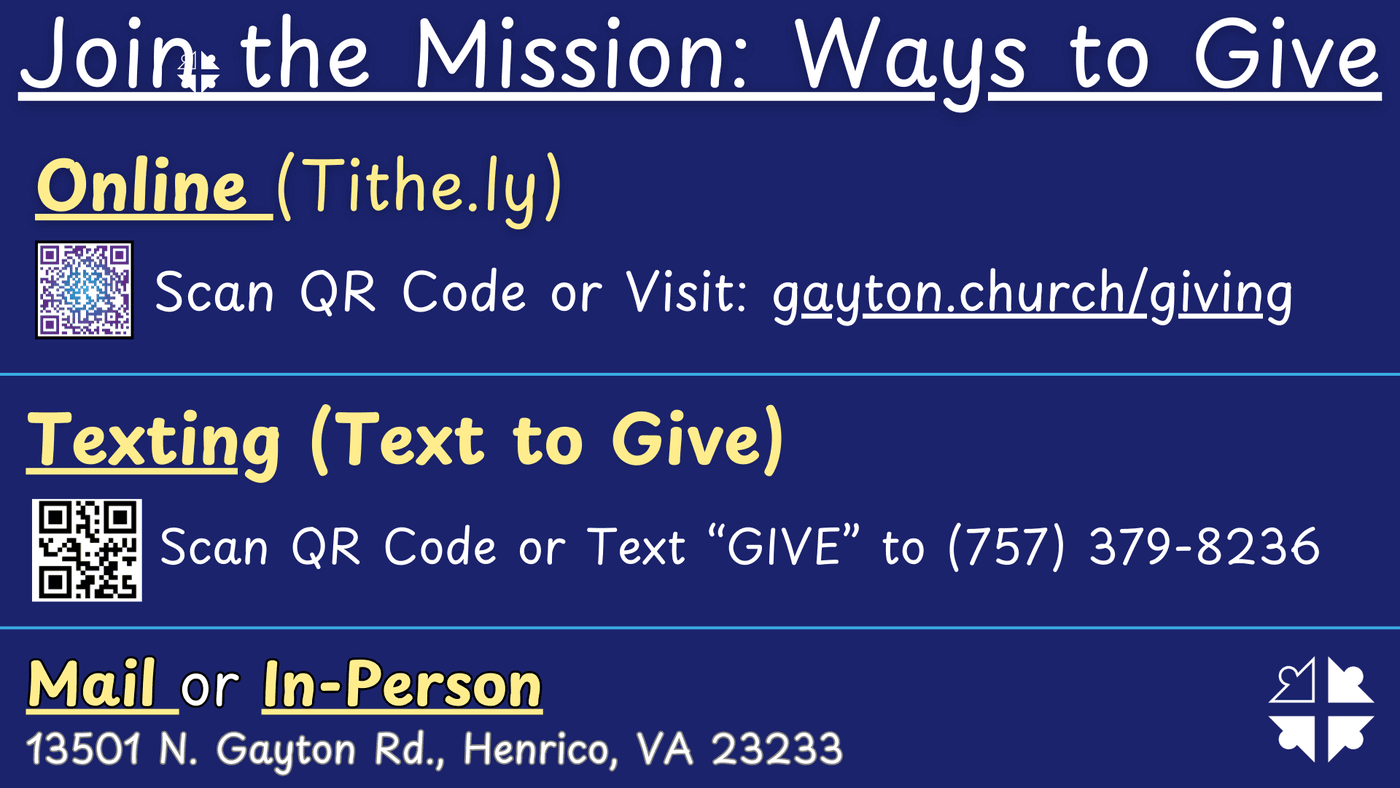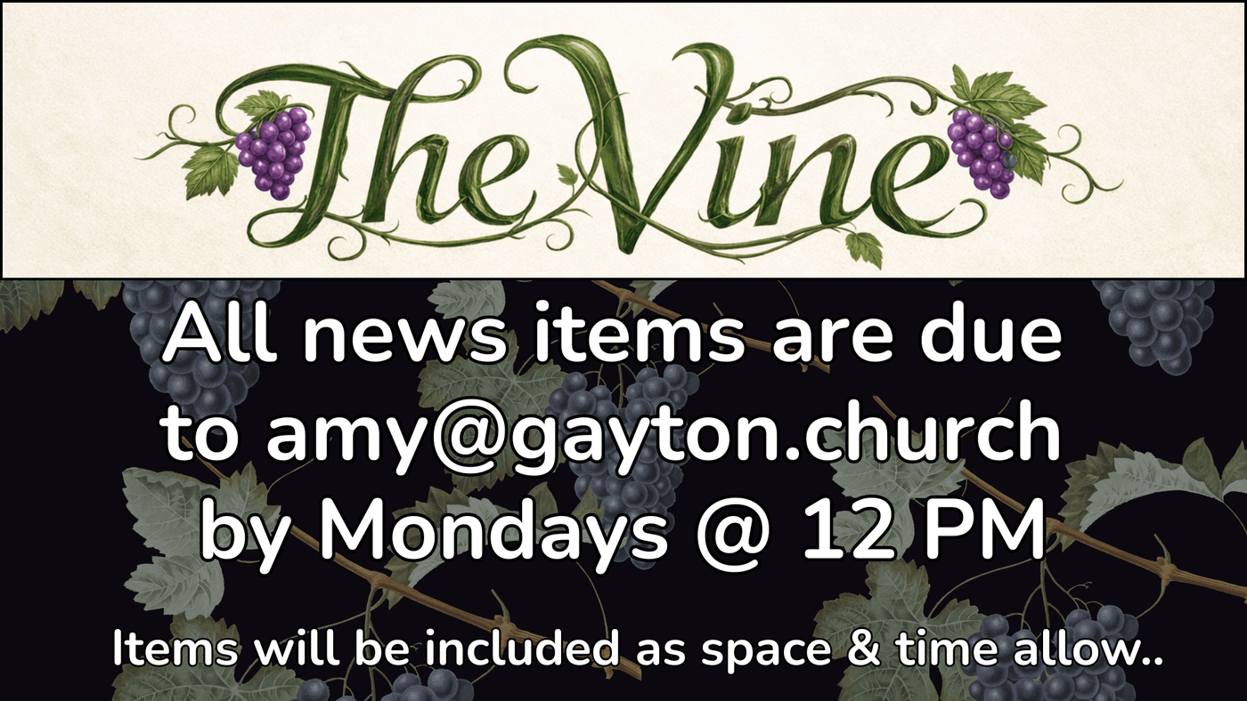 Please check out this week’s Vine for updates on how weather conditions may impact worship and church activities, as well as to see what else is happening at Gayton in the coming days.
