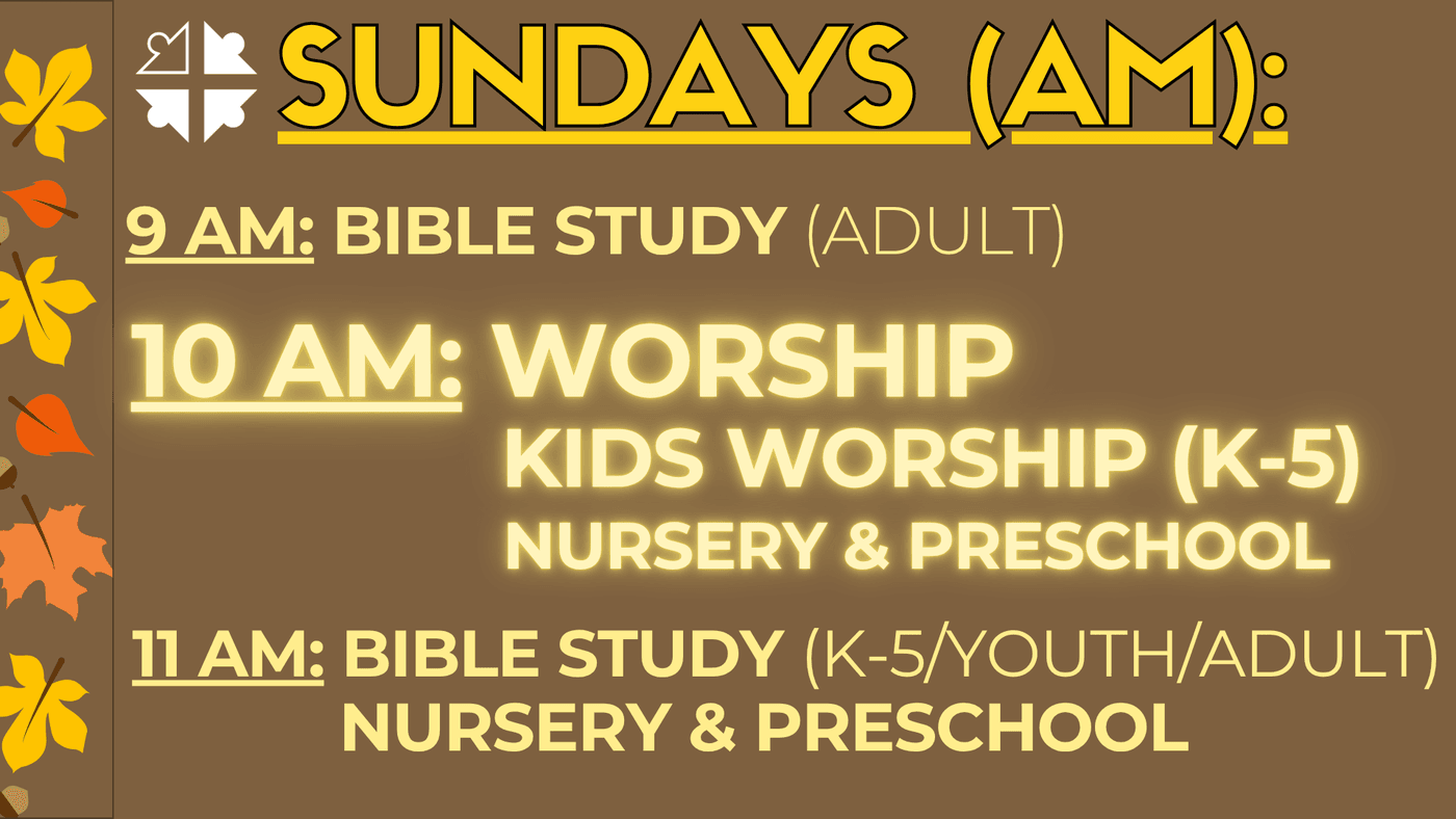 Sunday Bible Study - 9:00 AM and 11:00 AM